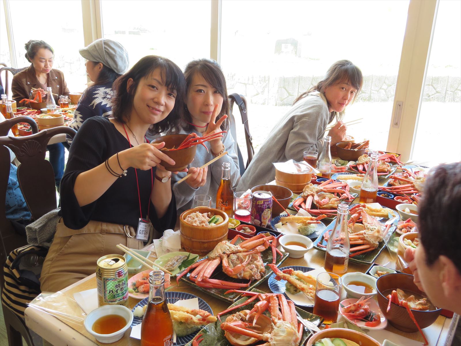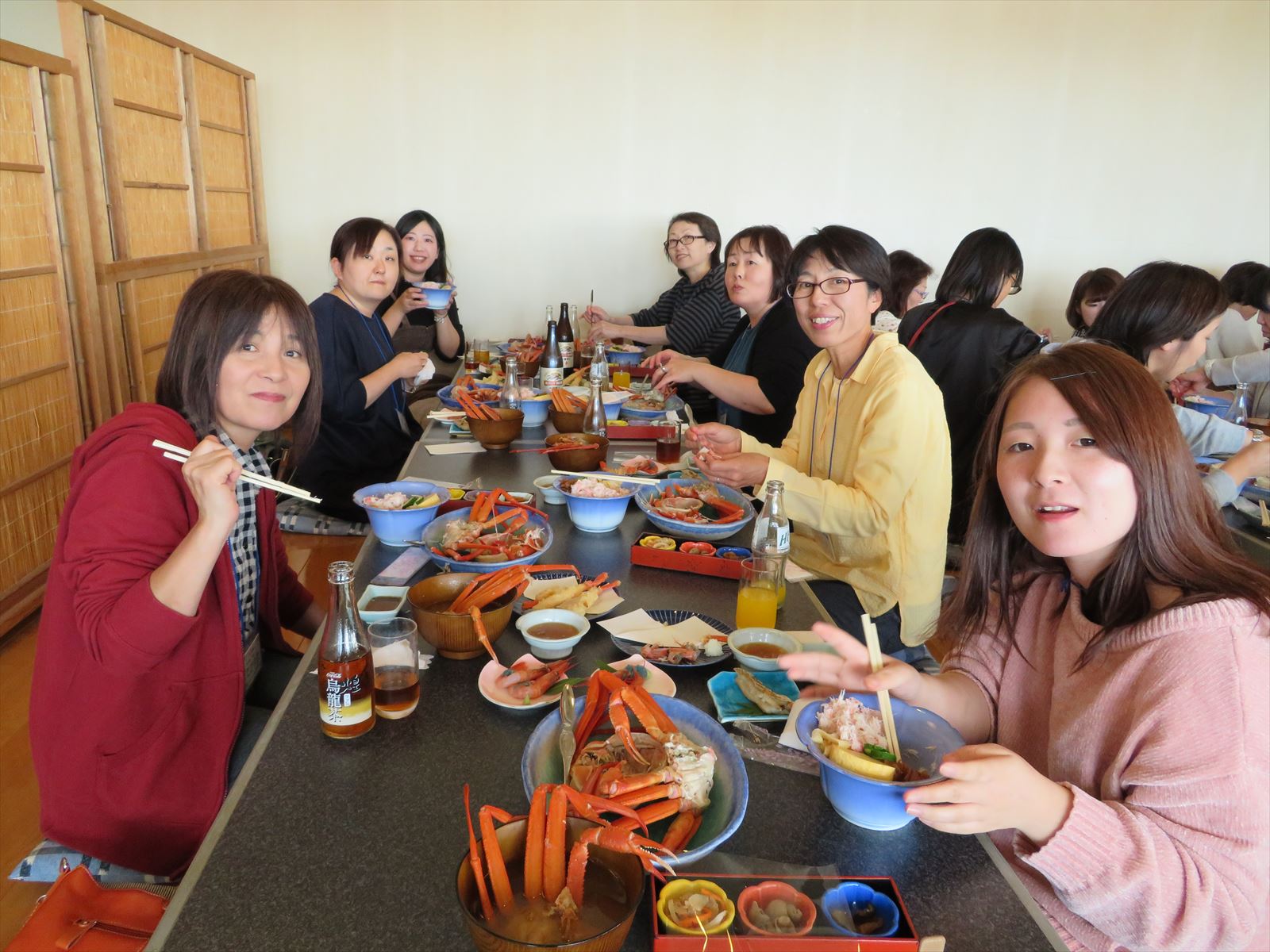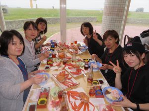 マリーンドリーム能生では,ベニズワイガニを堪能しました。ボリュームたっぷりの美味しいカニに,参加者のみなさんが夢中になって食べる姿がとても印象的でした。昼食後は,売店でお土産を購入する方がたくさんいらっしゃいました。