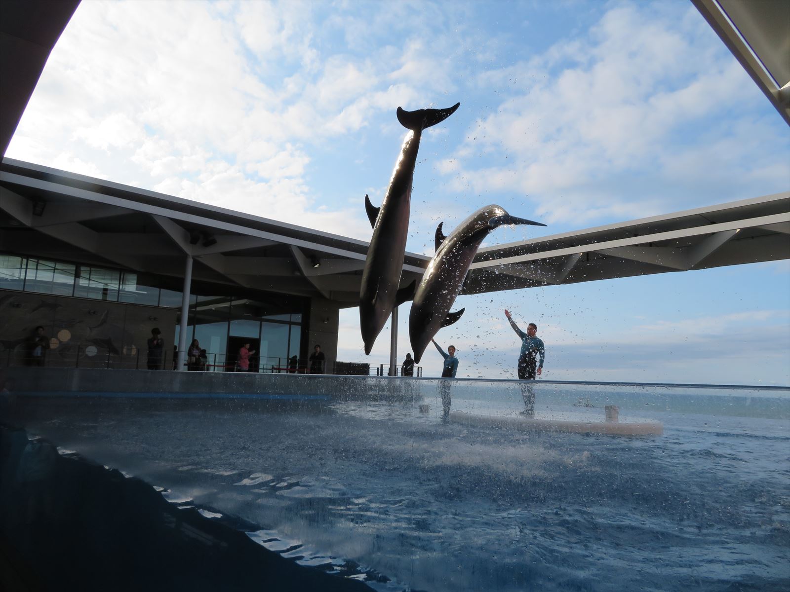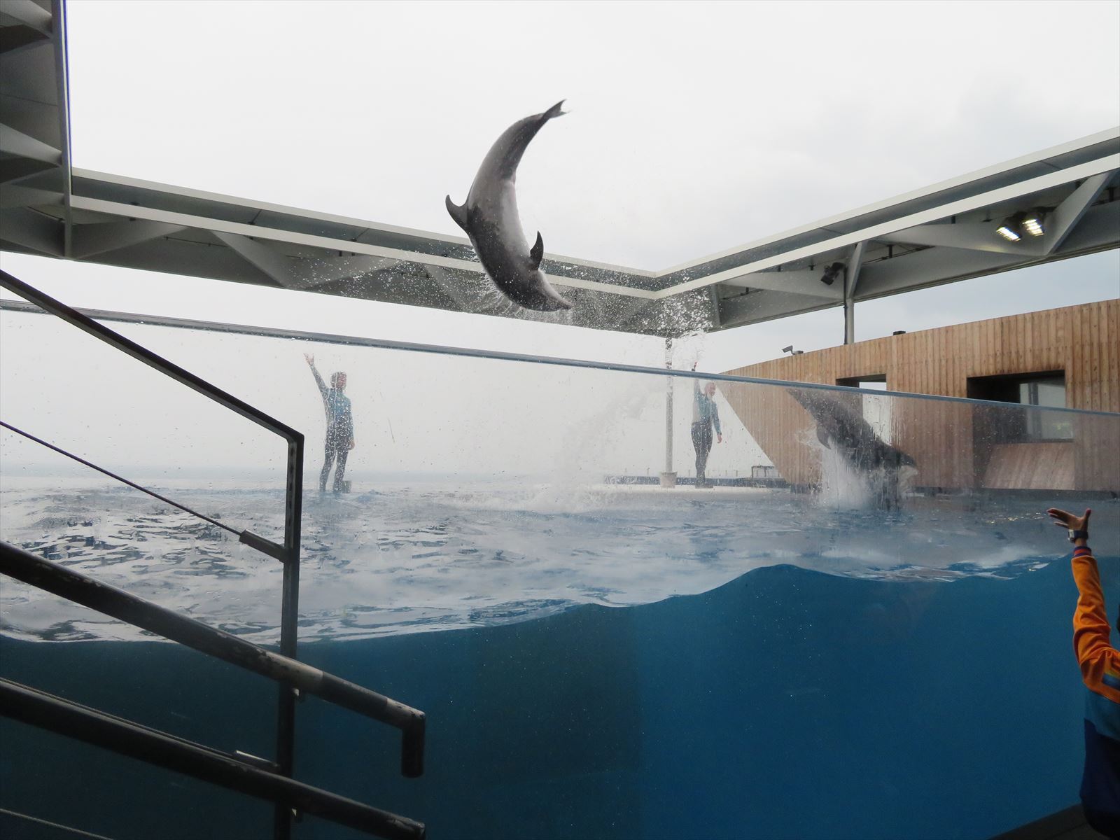 今年6月にグランドオープンしたばかりの上越市立水族博物館(うみがたり)では,日本海をバックにイルカショーを見物しました。また,国内の水族館でも珍しいシロイルカや,園内を自由に歩くマゼランペンギン(飼育数は日本一)の姿を間近で見ることもできました。