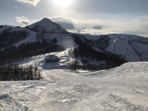 現地は非常に天気もよく、前日に雪が降ったこともあり非常に雪質もよく、気持ちよく滑走することができました。