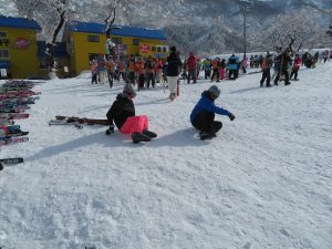 1月23日(水)南魚沼市の舞子スノーリゾートにて、青年女性委員会(YoungSeeds)主催の「スキー&スノーボード教室」を開催し、6支部9名とスタッフ8名の計17名が参加しました。この企画は青年女性委員会(YoungSeeds)主催のイベントですので、YoungSeedsのメンバーに主体性をもってイベントを企画してもらいました。今年は、午前中にインストラクターから技術講習を受け、午後からは午前中に習ったことを復習する時間にしました。また今回は初めてスキー教室の希望者も参加され、「初級」のクラスに属し、またスノーボード教室については、レベルを「初心者」「初級」「中級」「上級」の5つのクラスにわけ、インストラクターからスキーやスノーボードを楽しく、また気持ちよく滑走するための技術講習を2時間以上受けました。