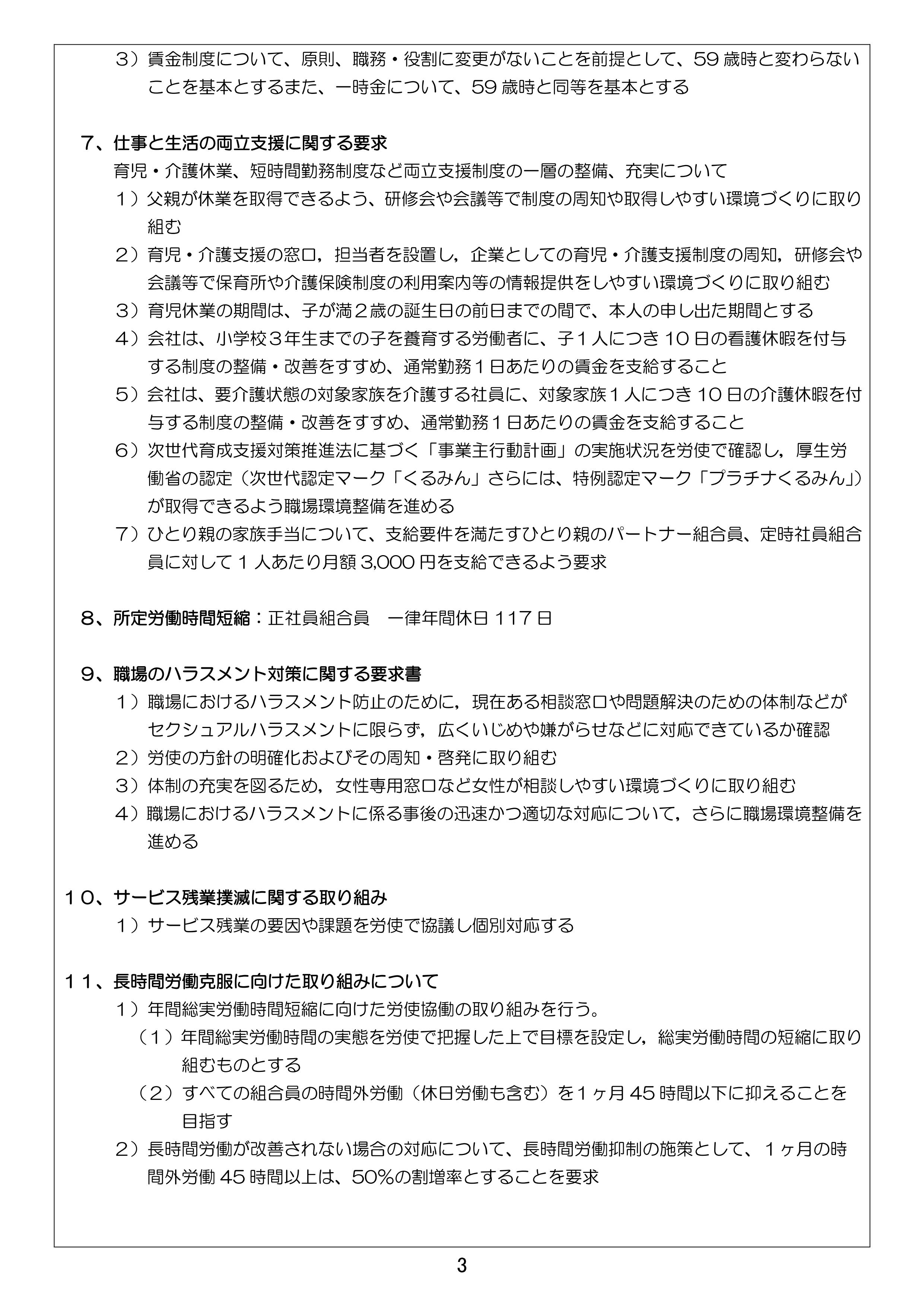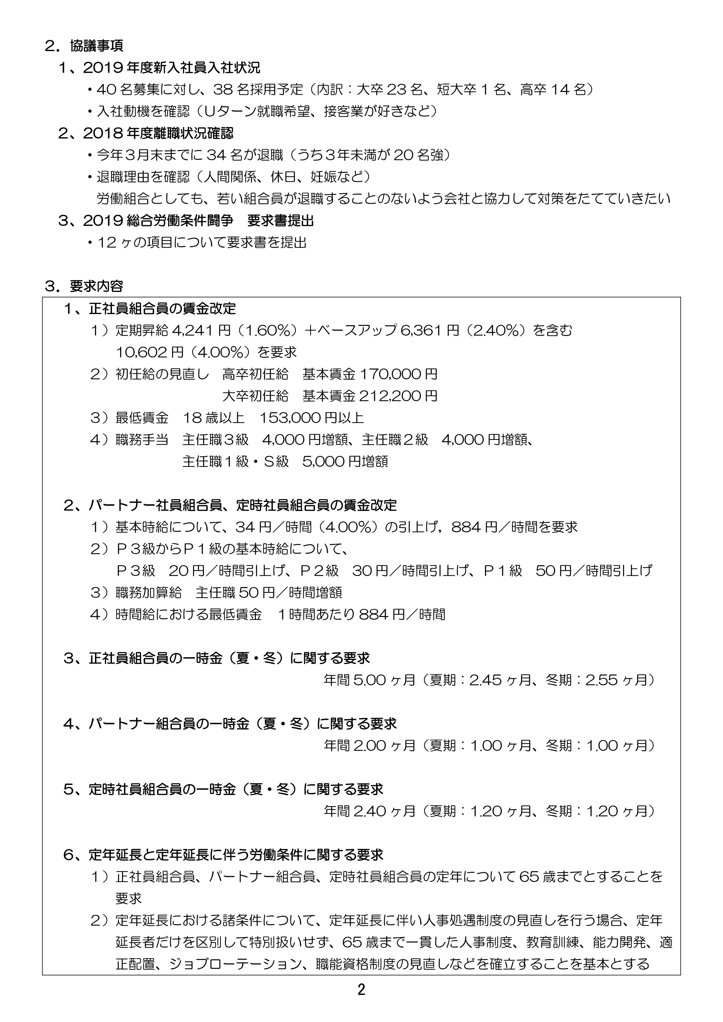 2.「2019総合労働条件闘争」要求内容については下記の通りです。