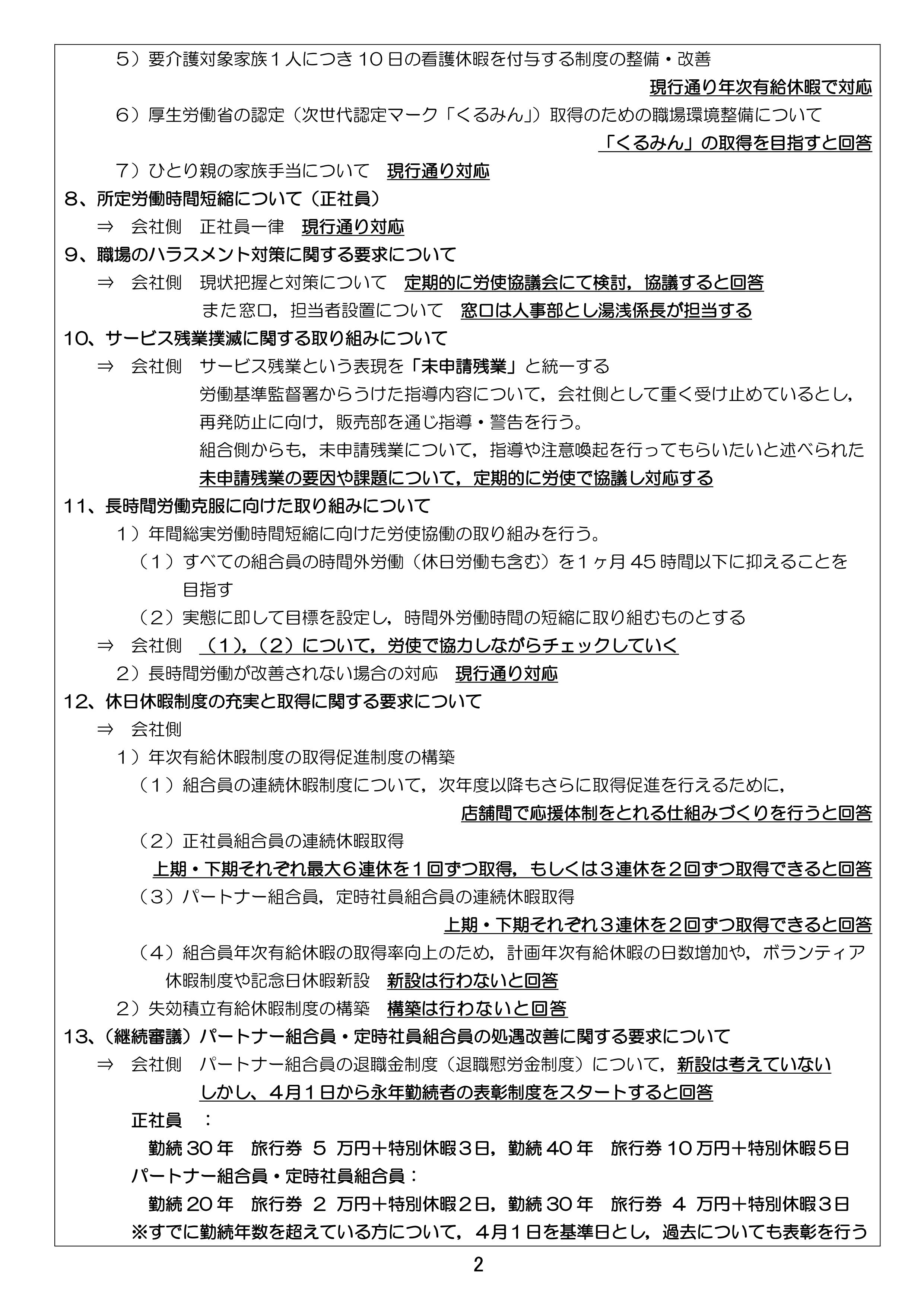 2.パートナー組合員・定時社員組合員の賃上げ要求