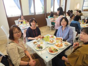 上里カンターレ・アマルフィでは,イタリア料理を堪能しました。上里いちご&トマト園で清算された野菜を使用した焼きたてピザや自家製生パスタをはじめイタリアの家庭料理が多数用意されており,参加者のみなさんが夢中になって食べる姿がとても印象的でした。昼食後は,売店でお土産を購入する方がたくさんいらっしゃいました。