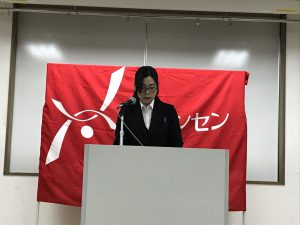 その後,野崎 晴菜副書記長より、「2019総合労働条件闘争」の交渉経緯の説明がありました。(詳細については,3月22日発行の『闘争情報vol.3』,3月27日発行の『闘争情報Vol.4』に記載)