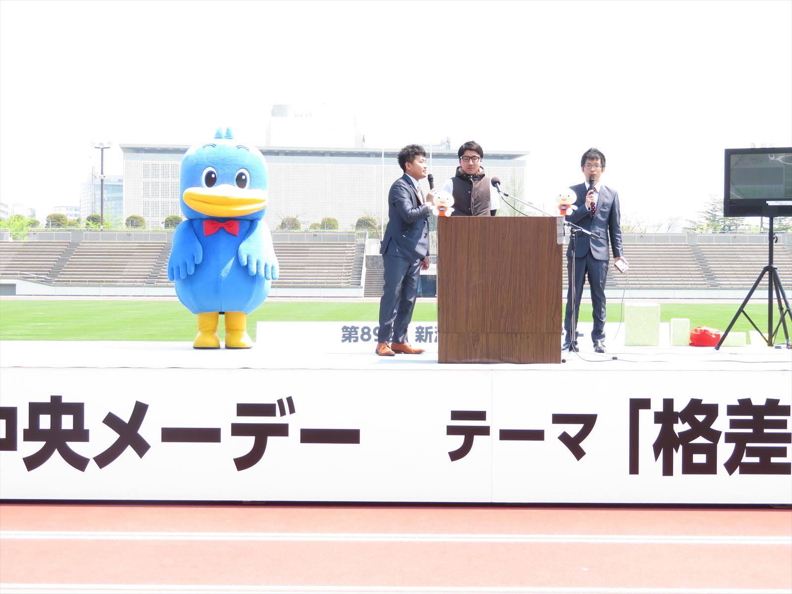 4月28日(土),新潟市陸上競技場にて「第89回新潟県中央メーデー」が開催され,執行委員13名が参加しました。(メーデー自体は約4,000名参加)