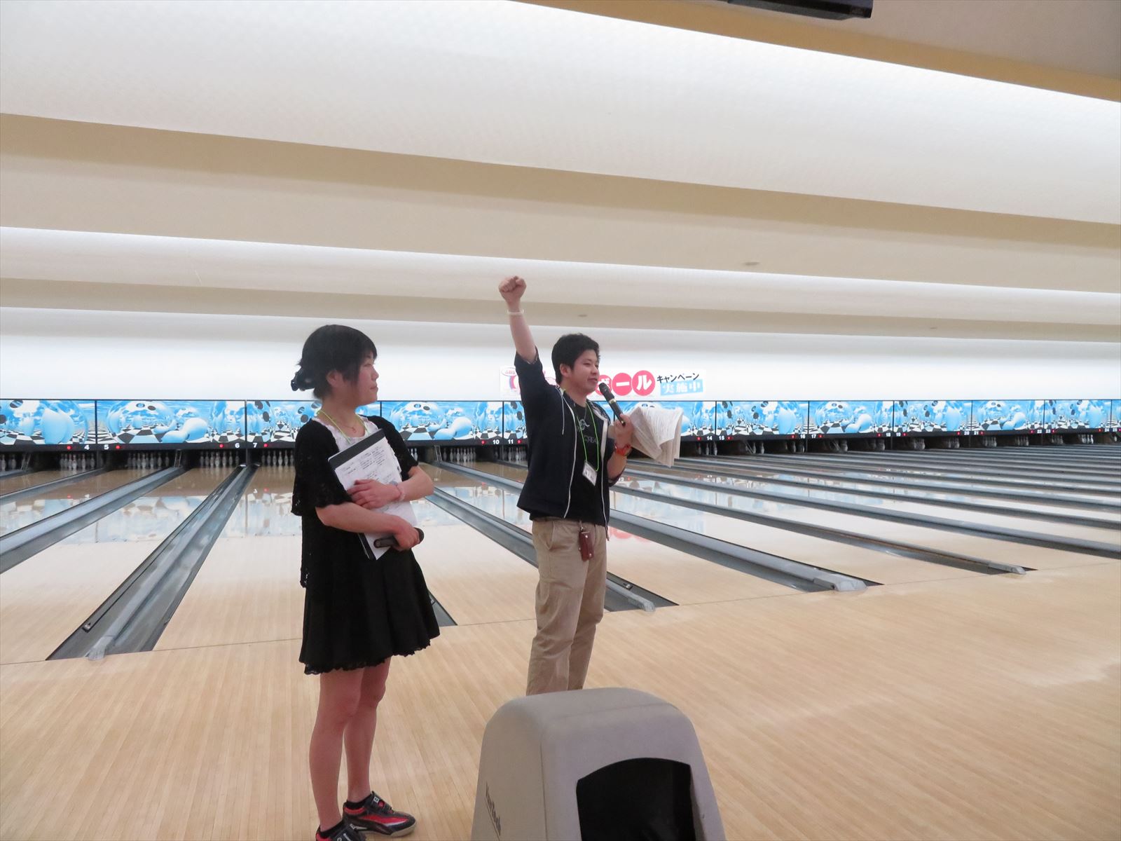 「YoungSeeds 吉村 浩平」さんによる「Let’s Enjoy Bowling‼」の掛け声で,会場全体に一体感が生まれたなか,「柏崎支部 塩野谷 陽子」さんによる始球式でゲームが開始されました。