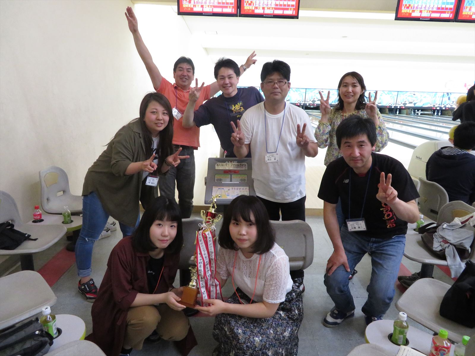 新入社員同士でスコアを確認しあったり,レーン内で「ストライク」や「スペアー」が出ると,みんなで「ハイタッチ!」をしている光景があちこちであり、会場は大いに盛り上がりました。