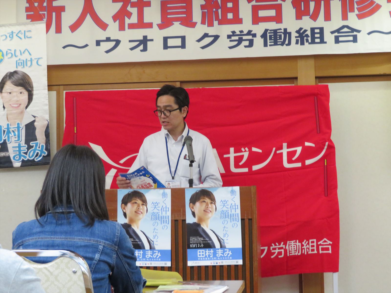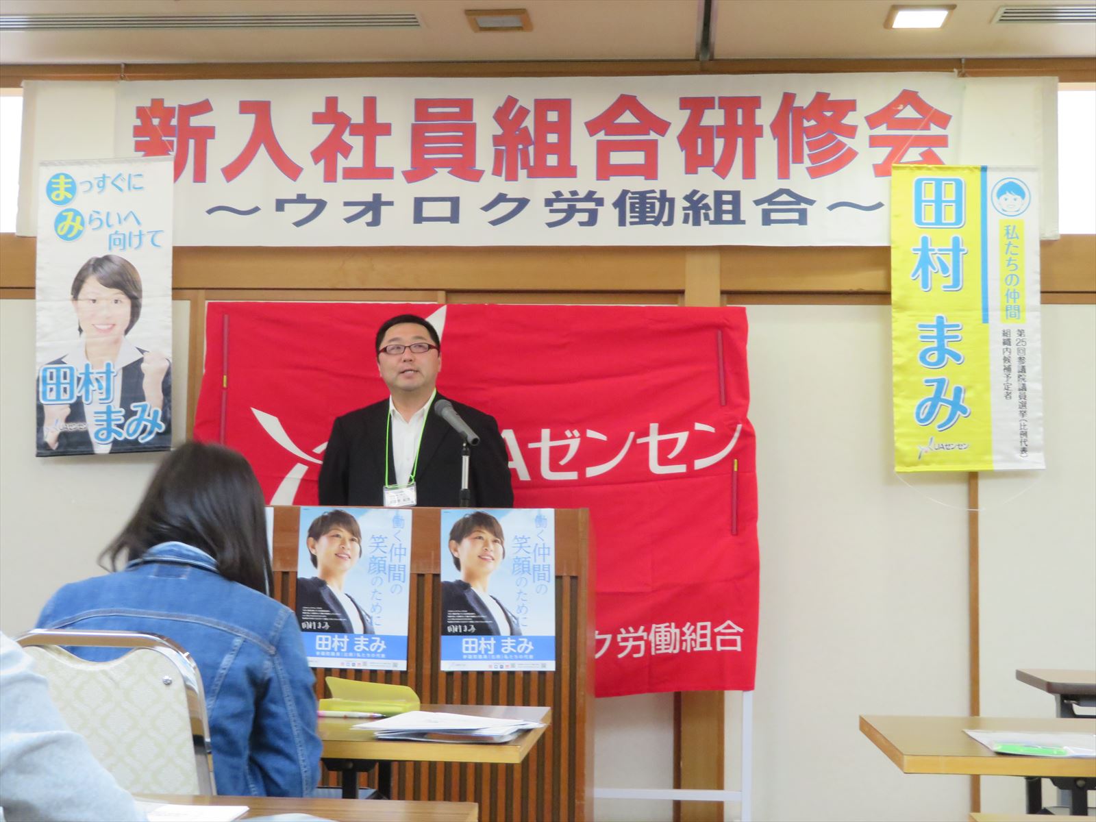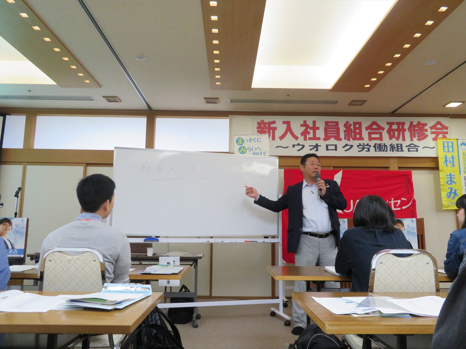 新入社員の皆さんが安心して働けるよう,組合員が一丸となって見守っていきましょう。