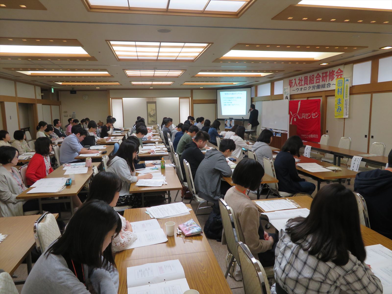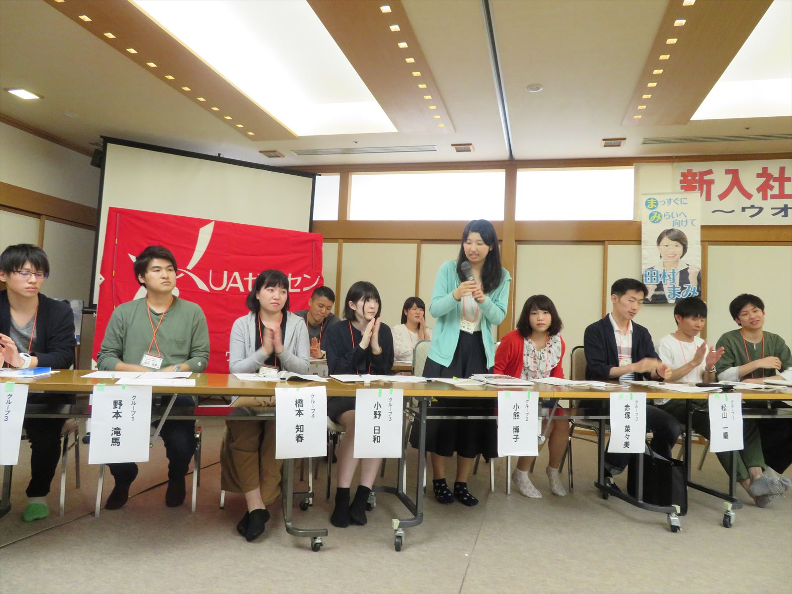 新入社員の皆さんは,事前に「労働組合について」下調べをしてディベートに臨みました。ディベートの経験が少ない人が殆どでしたが,グループ内で積極的に話し合い,活発な意見交換がなされました。