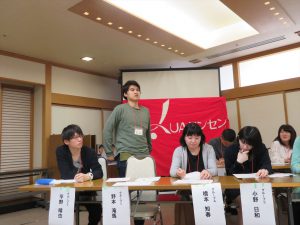 根立 章平さん(北山),野崎 晴菜さん(執行部), 吉村 浩平さん(YoungSeeds),金子 正義さん(非組)(長岡) |