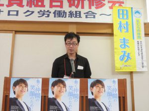 午後からは,「2018年度組合研修会」を開催し,32支部51名と執行部18名の計69名が参加しました。