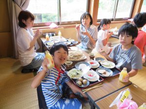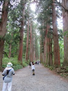 昼食後は,片道40分歩いて戸隠神社の奥社に参拝したり,戸隠民族館や戸隠忍法資料館,忍者からくり屋敷にそれぞれ過ごしました。奥社へ続く杉並木は今年の猛暑を忘れさせるような涼しさで,高くそびえたつ杉が並ぶ景色は圧巻でした。奥社では参拝をした後,お守りを買ったり,おみくじを引いたり,御朱印帳を書いてもらったりしました。この日のために御朱印帳を購入した人もいました。往復1時間以上の長い道のりでしたが,パワースポットでリフレッシュできたようです。また,忍者からくり屋敷の本格的な仕掛けは子どもたちに好評でした。