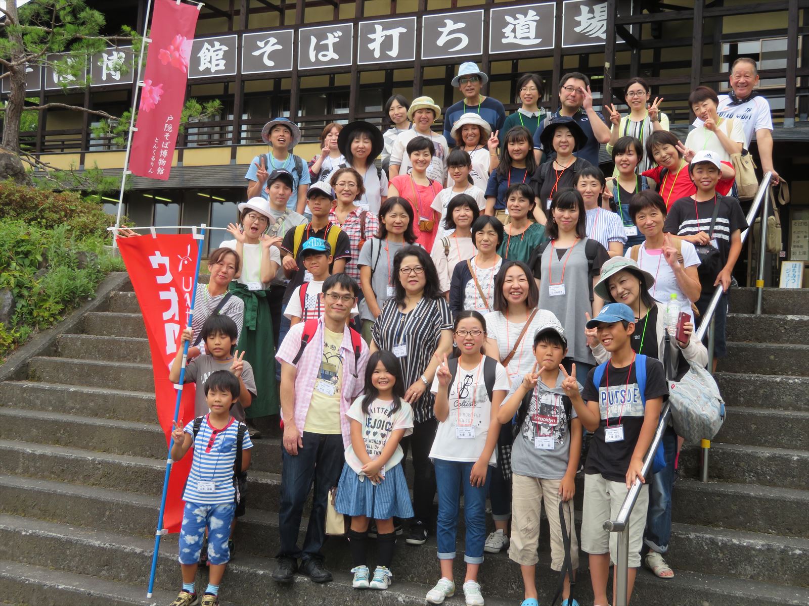 8 月 8 日(水),「夏の日帰り組合旅行 第1陣~長野戸隠そば打ち体験とパワースポットと隠し神社参拝ツアー~」と題しまして,8支部31名(うち小人11名)と執行部12名の計43名と長野県県長野市戸隠方面へ行ってきました。