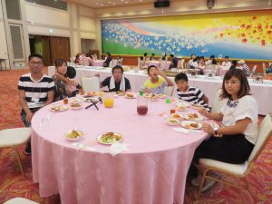 次に胎内市のロイヤル胎内パークホテルに場所を移し昼食をとりました。ビュッフェスタイルで、それぞれ好きなものを選んで食べることができて、楽しい食事になりました。