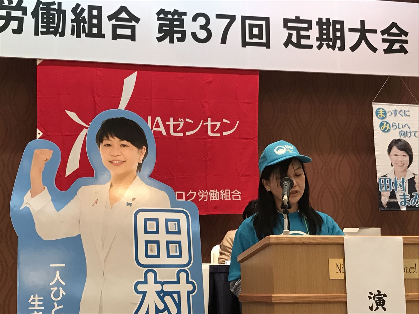 そして今大会をもちまして、長年組合執行部を支えていただきました渡辺久美子さん、斉藤光さんが退任されました。