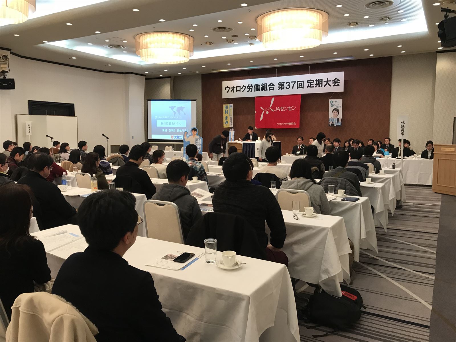 2月21日(水)新潟市中央区の東映ホテルにて、『第37回定期大会』を開催し、39支部74名の代議員が出席しました。2017年度の活動の振り返りと、2018年度の活動方針を確認しました。