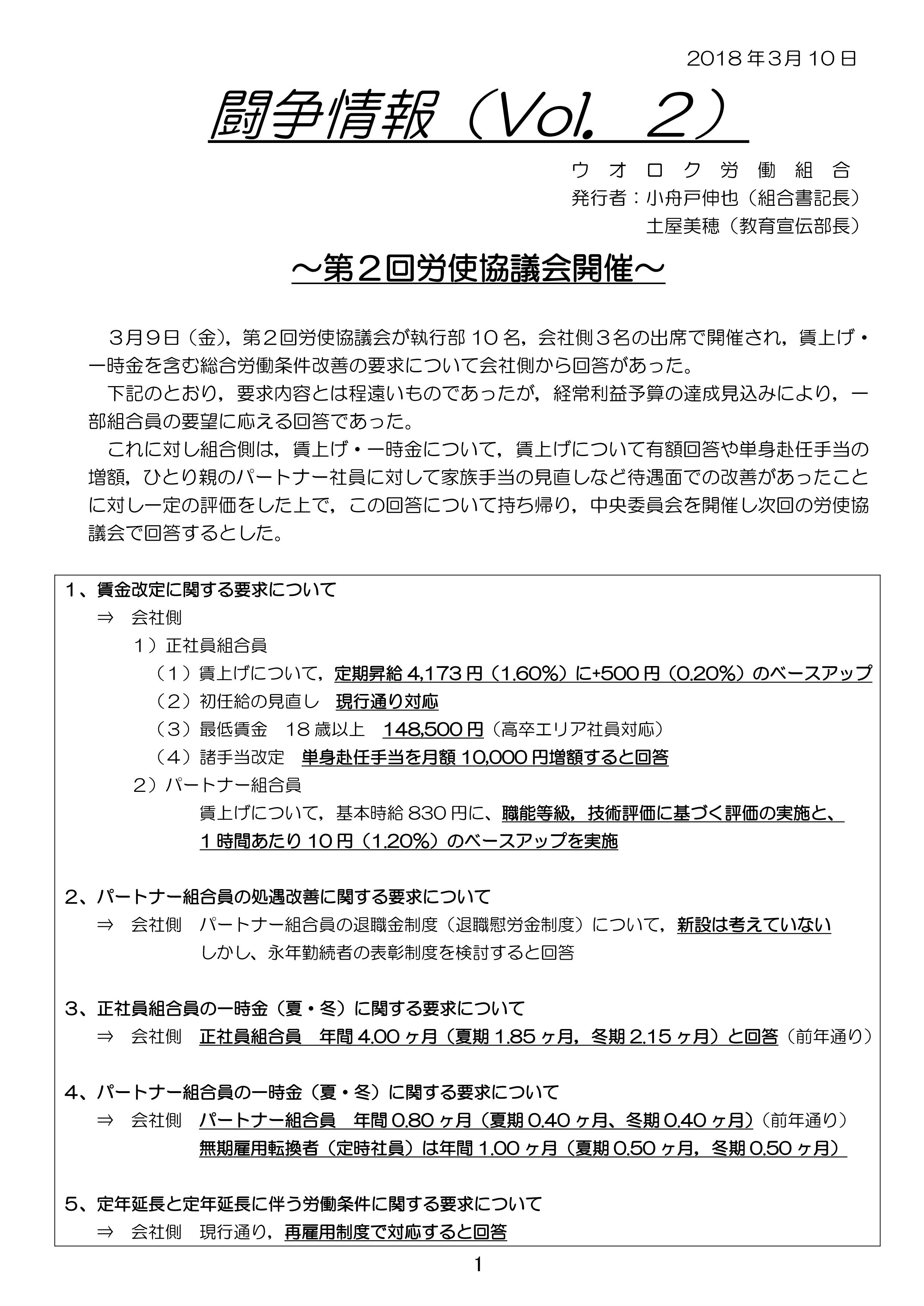 ※各項目の詳細については、各支部の組合掲示板に掲示されている「闘争情報Vol.2」をご覧ください