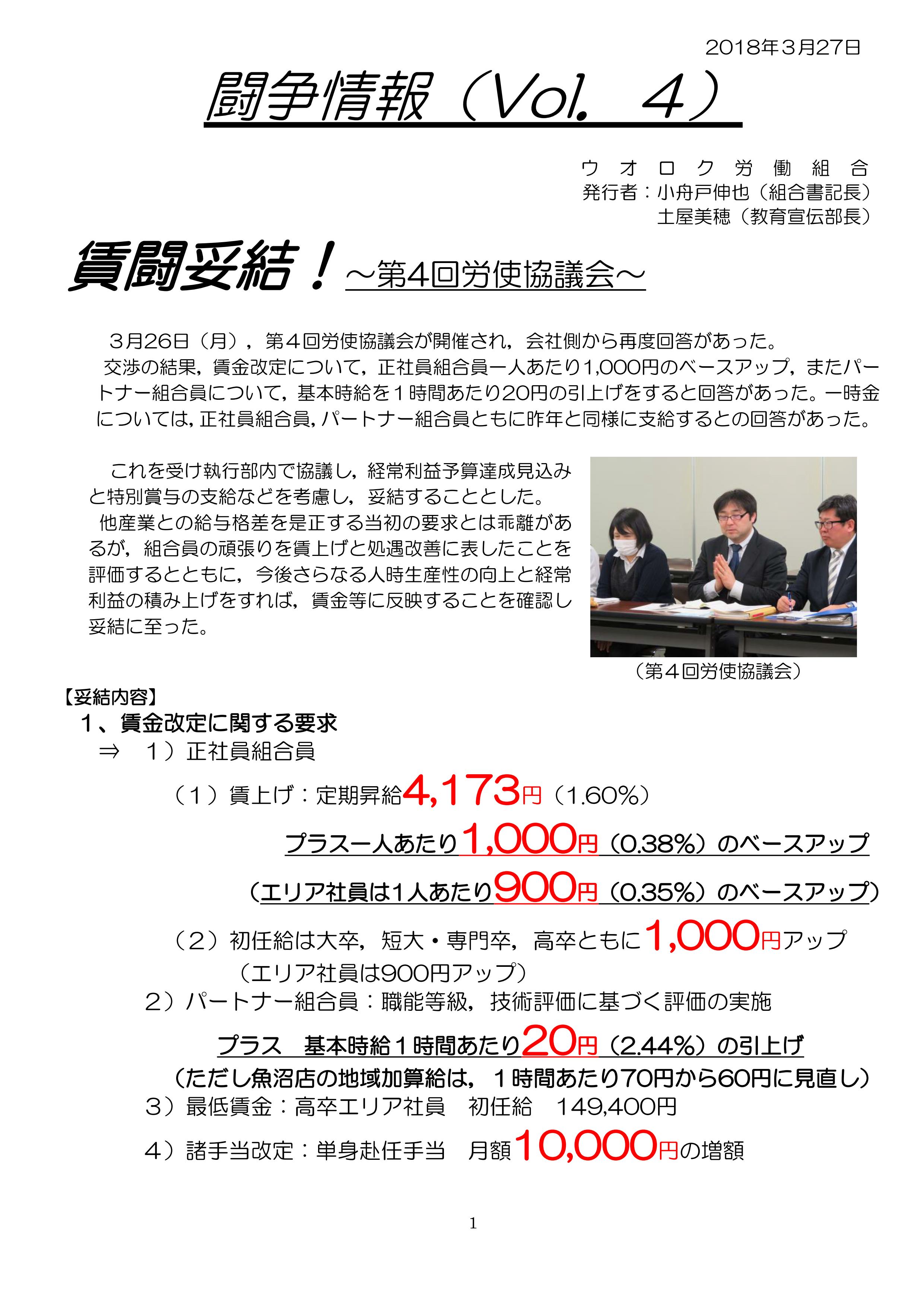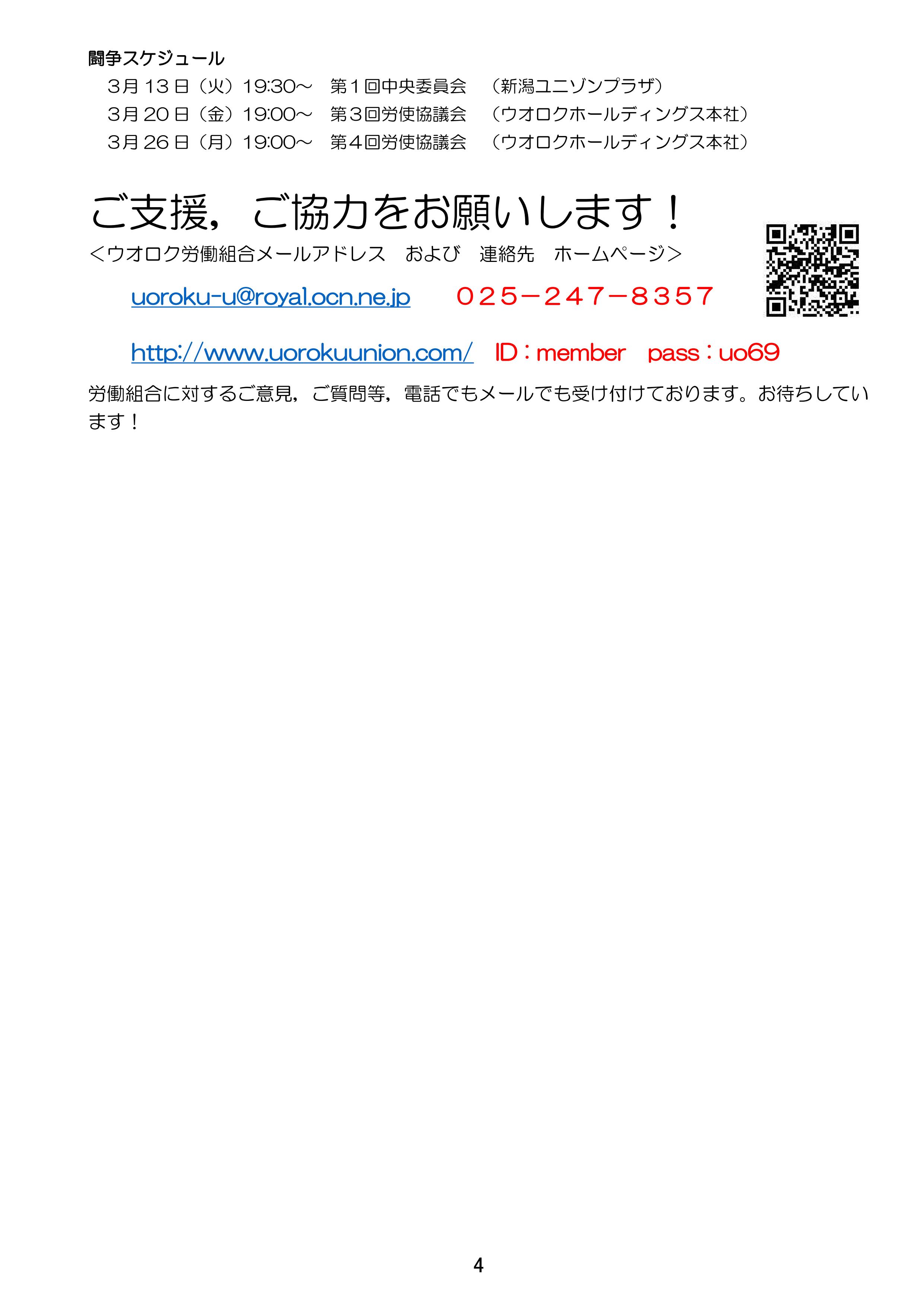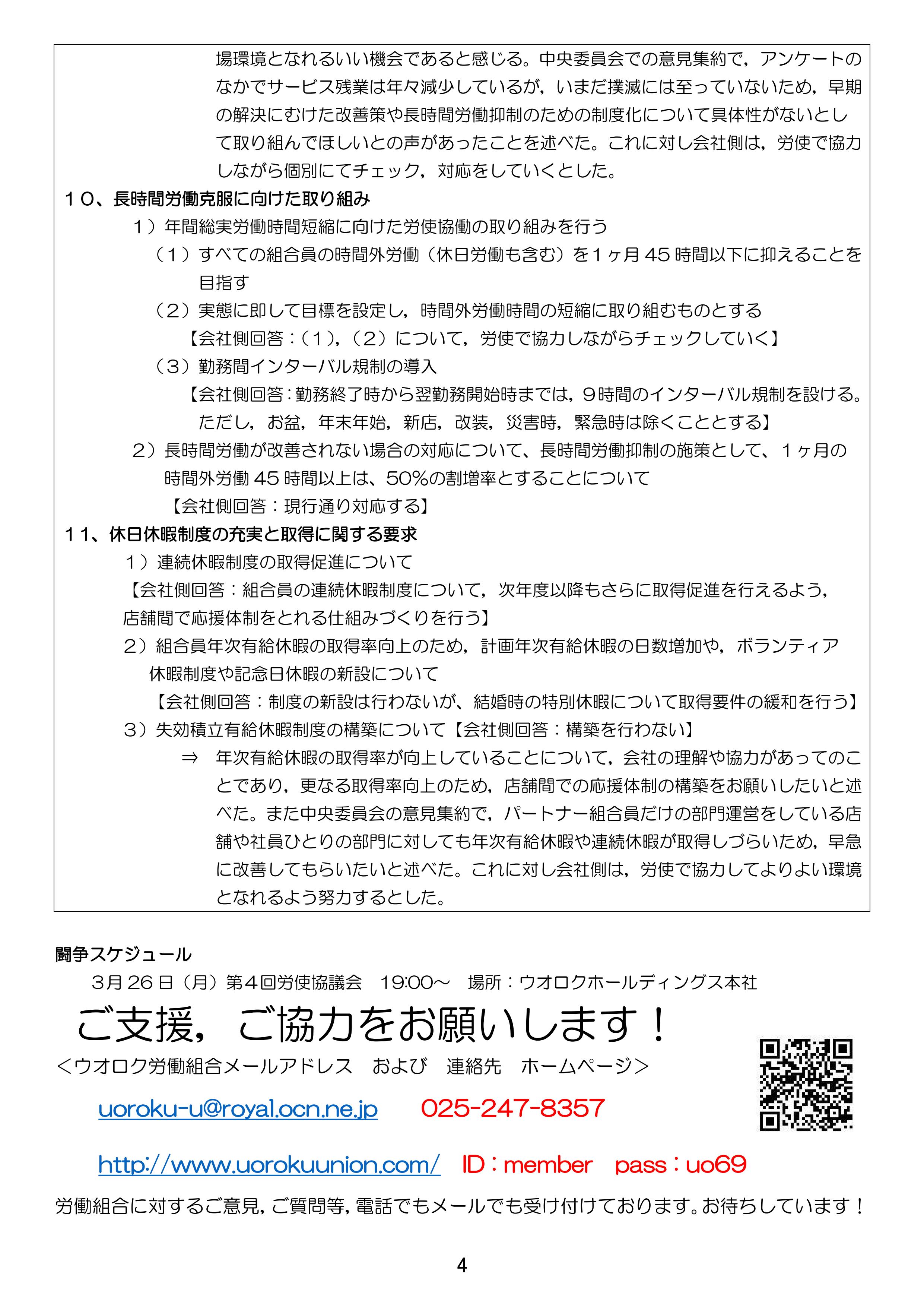 3月26日(月)第4回労使協議会 19:00~ 場所:ウオロクホールディングス本社