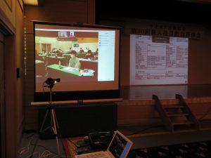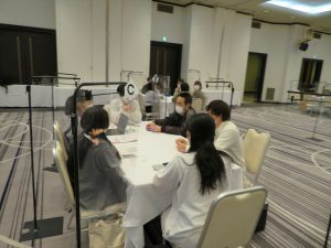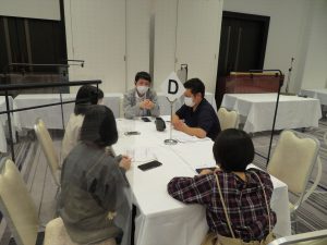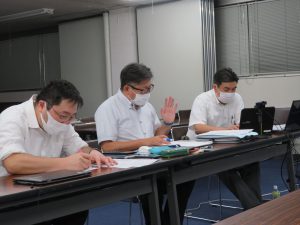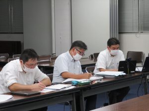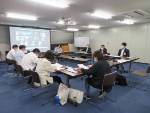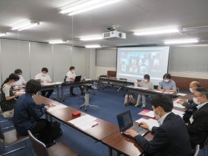 今回も「3密」をさけるために座席への配慮と,Zoomを使いリモートでの会議を行いました。