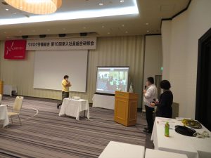 私たちにとっても新入社員の皆さんとの出会いは大切な機会であり,皆さんは会社の宝物のような存在なので,より輝けるようにお手伝いしていくので末永く勤めてほしいと伝え,みんなでいい会社だなと思えるような会社にするためにも,積極的に労働組合の活動をしていきたいと考えているので,これからぜひ協力をしてほしいとお願いし,締めくくりました。
