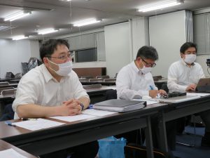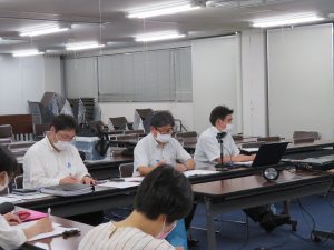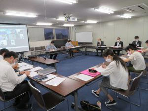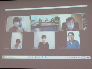 今回も「3密」をさけるために座席への配慮と,Zoomを使いリモートでの会議を行いました。