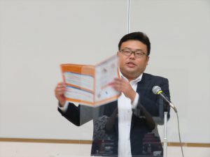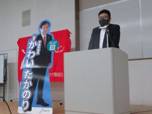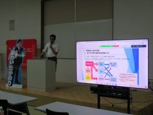 最初に「労働組合と政治活動」について,上部団体であるUAゼンセン新潟県支部 片山常任より,「労働組合はどうして政治活動をするのか」という内容についてご講義していただきました。