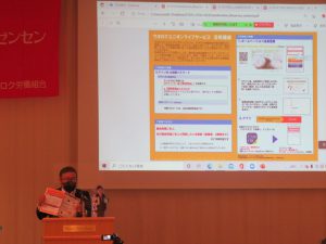 今回の講演内容は,今期から始めた「ウオロクユニオンライフサービス(団体型福利厚生サービス)」についての紹介と,「UAゼンセン共済」「誰でもできる資産形成」についてでした。