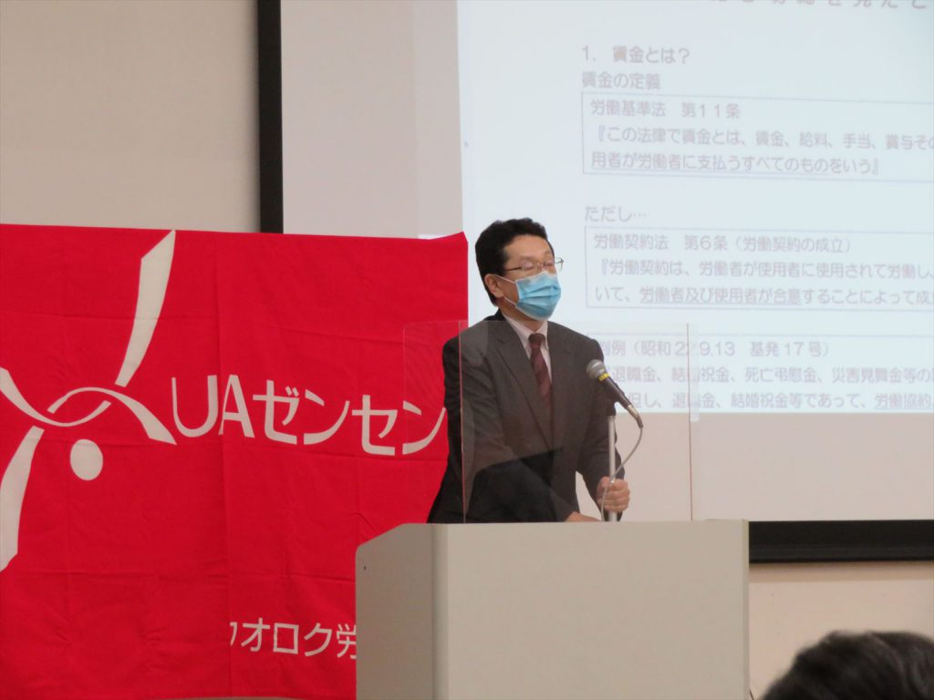 「給与明細の見方や支払っている税金や社会保険」について,UAゼンセン新潟県支部の砂長 勉支部長さまよりご講義頂きました。