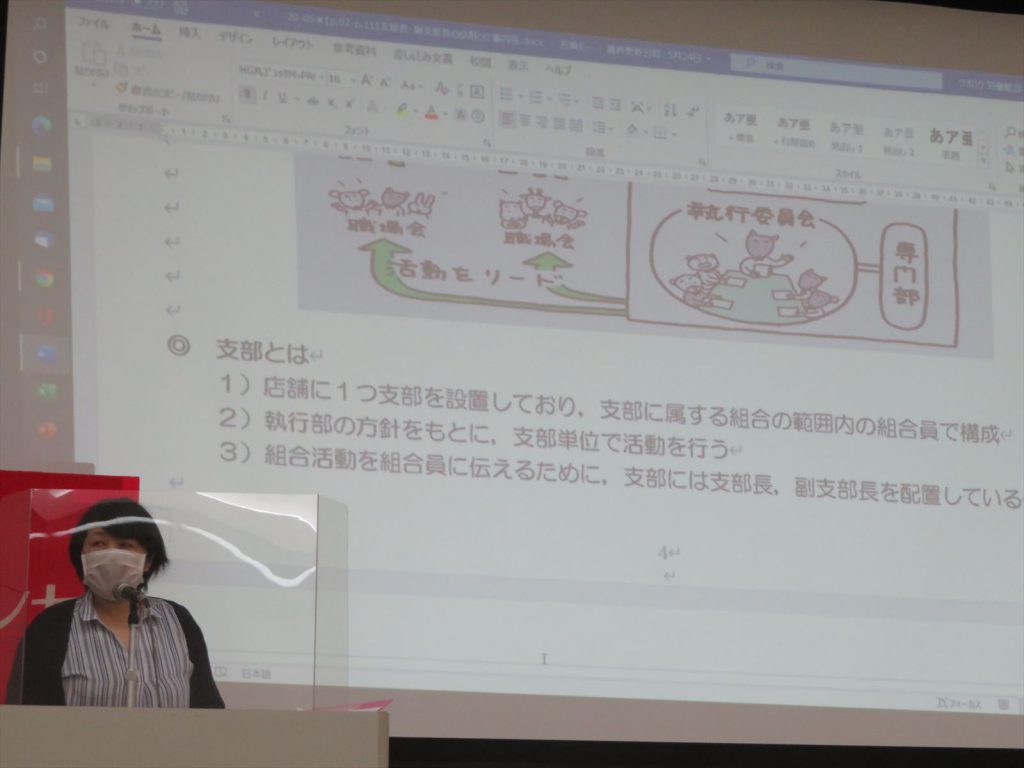 まず,支部長は『お店における組合の代表です!』という意識を持ってもらいたいとお願いし,その中で組合活動で今どんなことが起きているのかをみんなに知らせる役割を担っていると説明しました。