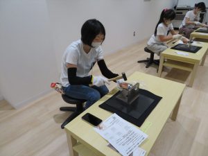 自分だけのタンブラーを作るべく,みんなが無言でひたすら金槌をタンブラーに打ち付ける音のみが響く空間は清々しい雰囲気で,みんなで集中して製作に挑むことが出来ました。
