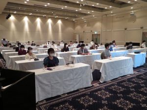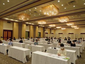 今回,会議を開催するにあたり新型コロナウイルス感染症対策として,約200名が収容できる大研修室で座席への配慮を行いながら開催しました。