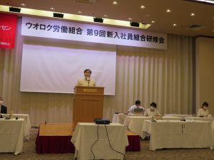 UAゼンセン新潟県支部の砂長支部長の講義では,賃金についての基本的な知識,そしてウオロクの賃金体制の説明,手当各種,評価制度のことなどについて,質問形式のやりとりなどを交えつつ講義していただきました。新入社員の方々には,「自分のもらう給料の内訳は一体どうなっているのか」,ということへの興味を持っていただきたいという熱い思いと知識を受け取って頂けたと思います。