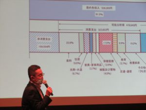 ろうきんの片桐次長代理様には,ろうきんと他の金融機関との違いや,金利の重要さについて教えていただきました。プライムサポートのファイナンシャルプランナーである大久保様からは,保険代理店とは保険会社と利用者のどっちもをつなぐ仲介者であると説明していただき,2・3年先ではなく,もっと先のことを見据えてお金のことを考える必要がある,それについてのライフプランを組み立てる重要性についてお話をしていただきました。